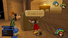 Sora & company arrive at the Olympus Coliseum: where true heroes are made! Enter the Lobby straight ahead of you and talk to Phil. Try pushing the pedestal along the wall, then talk to Phil again to begin "hero training."