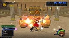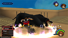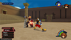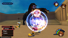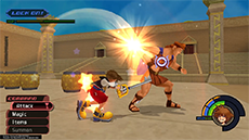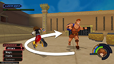 After the match with Cloud, Hades releases Cerberus to wreak havoc on the coliseum and contestants. However, Hercules arrives just in time as Sora and Phil run to safety. Save your progress in the lobby, equip curative items, and enter the arena once more.