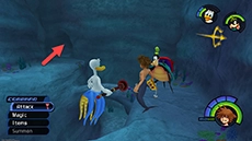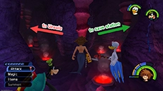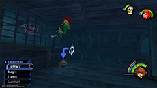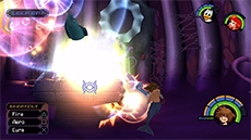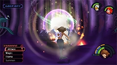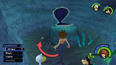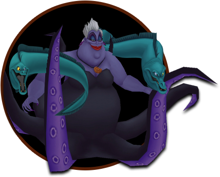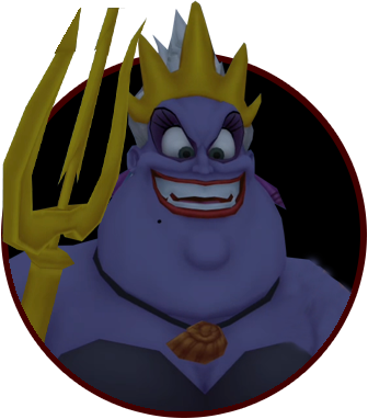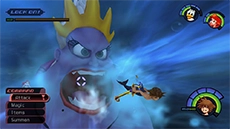 HP: 900 EXP: 1500 DIFFICULTY: This fight can be difficult and tedious due to Ursula's immense size and powerful attacks; the key to avoiding damage is to always stay on the move. The lightning bolts track you and will appear over your head every few seconds; strike Ursula's face up close with the Keyblade twice, then move to a new position to avoid the next bolt and repeat. Cast Aero magic to boost your defense against Ursula's attacks (it cuts damage taken in half!); this will allow you to keep attacking without having to heal as often. Equiping thunder-resistance accessories like the Thundara Ring can help significantly reduce the damage you take. Ursula is somewhat susceptible to Stop magic; you can use this to stop her movement and lightning attacks for several seconds, allowing you to heal up or attack without retaliation.