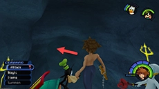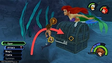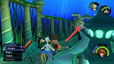 After you defend Ariel from the Heartless, travel through each area and follow the tridents on the walls to reach Triton's throne. When you reach the fast-moving jetstream, hug the right wall nearest you to reach the correct way forward. After meeting