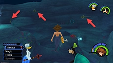 button to dive). After you catch up with Flounder several times, a group of strange Heartless appear that you must defeat in order to proceed.