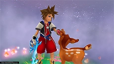 Bambi is acquired as a summon by giving the Fairy Godmother the Naturespark - this summon gem is awarded to Sora after completing the mini-game in the first Torn Page of the Hundred Acre Wood. When summoned, Bambi will release MP orbs whenever he makes contact with Sora, allowing you to cast magic spells much more freely. You can equip Treasure Magnet to Sora in order to pull in MP orbs from farther away, and you can also equip Jackpot to Sora in order to increase the amount of MP orbs that Bambi drops.