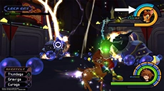 button to unleash Simba's Proud Roar attack. A fully-charged Proud Roar can instantly clear out waves of Heartless, but there's a caveat: Sora must remain in place while charging the attack, and any damage taken while filling the CHG gauge will interrupt the process, forcing you to start over. For best results, try summoning Simba in the very first moment just as enemies start to spawn. Costs 2 MP.
