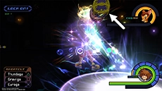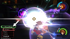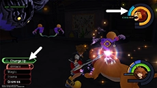 button to fill the CHG gauge; the attack can be charged up to five levels, but your maximum charge level will depend on the length of your CHG gauge (you can increase this by equipping a MP-boosting keychain and accessories, and by equipping the Cheer ability).