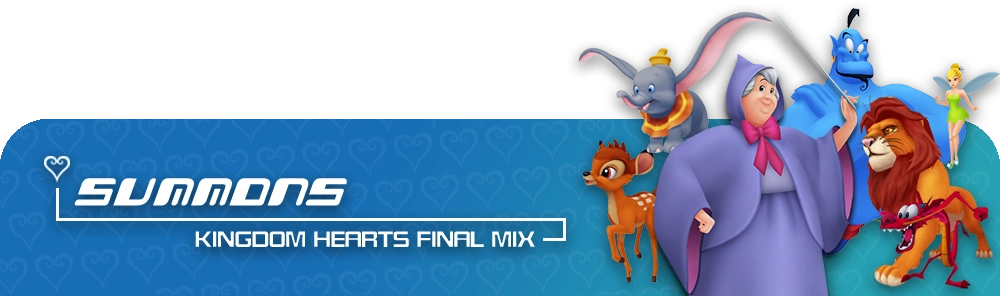 Summons become available during Sora's second visit to Traverse Town. If you bring rare summon gems to the Fairy Godmother (located in Merlin's Study), she will help Sora learn how to summon various characters to aid him in battle. Other summons are acquired through story events.