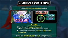 INFORMATION: Score five or more Excellents in a row! Your objective is to clear the musical challenge with at least five consecutive EXCELLENT notes.