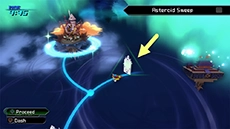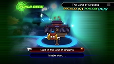 Before landing in a world, take note of its BATTLE LV in the top-right corner of the world menu. It's recommended to visit worlds in ascending order of battle level. Clearing the Asteroid Sweep gummi route will allow you to Land in the Land of Dragons.