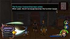 When Sora leaves the Hundred Acre Wood, Merlin will explain that the Heartless have taken the Torn Pages from the book, and Sora must find them throughout various worlds. Merlin will also give Sora the Baseball Charm item, allowing the use of Summons. The party will be brought back to the World Map automatically.