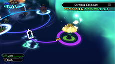 Before landing in a world, take note of its BATTLE LV in the top-right corner of the world menu. It's recommended to visit worlds in ascending order of battle level. Clearing the Phantom Storm gummi route will allow you to Land in Olympus Coliseum.