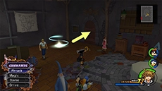 Sora and co. will arrive in Merlin's House. Save your progress at the save station, then approach Donald and Examine The Book. Touch the paper pop-up of Pooh's House on the bottom of the left page. After the cutscene, approach Pooh and Greet him. After the cutscene, Sora will automatically move outside of Merlin's House to fight the Heartless.