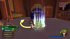 When you've finished reviewing the journal and familiarizing yourself with Donald & Goofy's settings/abilities, head into the Woods area to proceed. After the short cutscene, save your progress and exit the Usual Spot. If you travel to the Sandlot, there's an optional cutscene with Seifer and the Struggle tournament promoter.