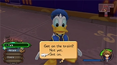 After another cutscene, you'll be able to explore Central Station. Open the three treasure chests here if you wish, then Save your progress at the nearby save station. When you're ready to proceed, Talk to Donald and select "Get on." to board the train.