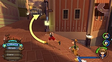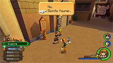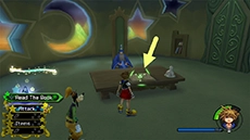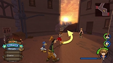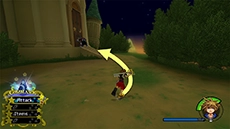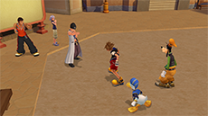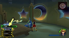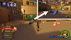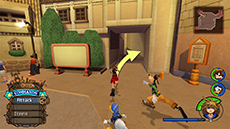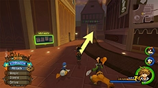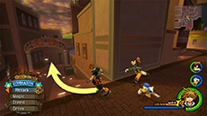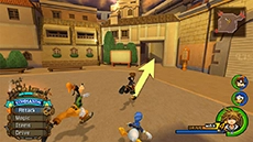 After the cutscene, Sora and company will start in Tram Common. Enter the Sandlot through the passage in the southeast corner of Tram Common (you can also reach the Sandlot from the passages in Market Street and the Back Alley).