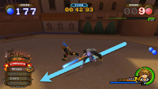 If there’s some distance between Sora and Seifer, he may jump into the air, then dive down and forward towards you; move to the sides to avoid it, or Guard with the right timing to deflect. Standing directly under Seifer while he uses this diving attack will likely result in Sora taking damage.
