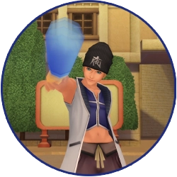 When Setzer has fewer than 50 orbs, landing Sora's combo finisher will cause him to retaliate with a whirling mid-air spin attack; you can Guard this or move to the sides to avoid it. If you move too far away from him, Setzer may close the distance with a four-part lunge attack - deflecting this attack with Guard will leave him wide open to attacks.