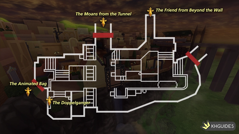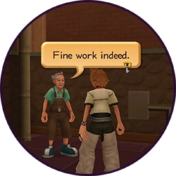 Descend the steps to reach Sunset Terrace. Roxas is tasked with investigating the "seven wonders of Twilight Town." You can Talk to Pence to view a list of the remaining "wonders" to investigate.