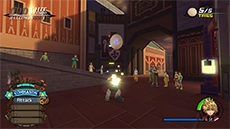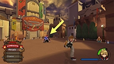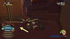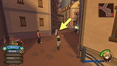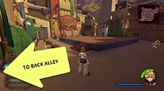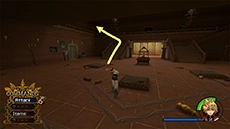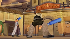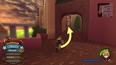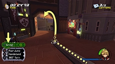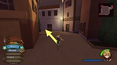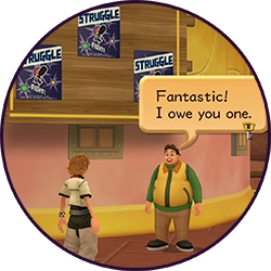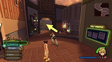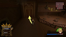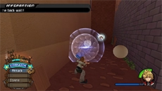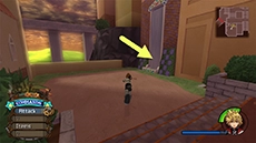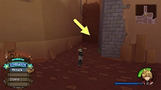 Travel to the alley leading to a dead-end in the northeast and Investigate the back wall. Large balls will start flying out of the wall towards Roxas. Move Roxas down the alley and avoid the incoming balls by moving left or right. The patterns are randomized, but there are several combinations that you'll see often.