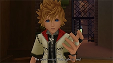 When you gain control of Roxas on the second day, approach the swirling light in front of him to access the Save menu. Kingdom Hearts II Final Mix does NOT have an auto-save feature, so it's wise to save at these stations as often as you see them.