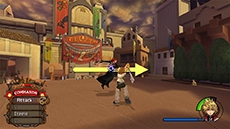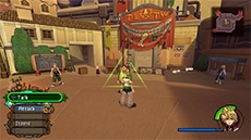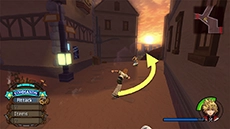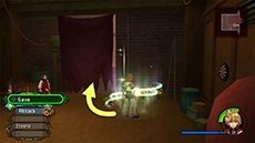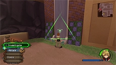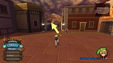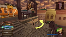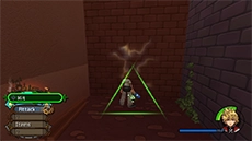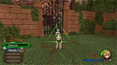 The green gauge in the bottom right corner is your HP gauge - if this reaches zero, it's game over. The blue gauge is your MP gauge - magic will become available at a later time. Whenever you approach a target in combat, you'll see a yellow reticle appear. Press the