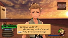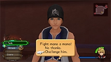When you regain control of Roxas, you can travel to the Back Alley and Talk to Seifer in order to spar with him. Fighting Seifer is your only opportunity to earn EXP at this time; he yields 13 EXP per win. If you wish to fight Seifer again, exit and reenter the Back Alley in order to reset the room, then talk to Seifer.