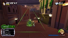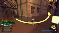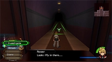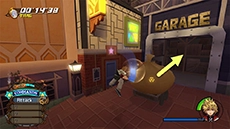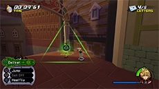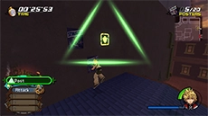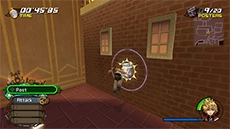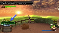 Approach the moving back and use the Jump On reaction command - the STAMINA bar will deplete while Roxas is riding on top of the bag. When the bag approaches one of the trash bins, use the Jump reaction command to hop over the bin. Roxas will fall off of the bag if he strikes a trash bin. The investigation will end when the STAMINA bar is fully depleted.