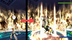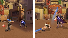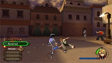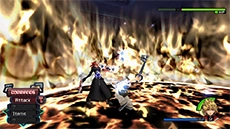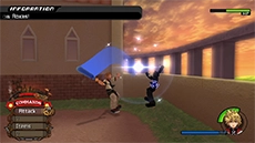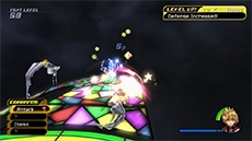 Just like in the first fight, Axel is open to damage when he sidesteps. Continue your combo until you send Axel into the air; then use the Overtaker and Clear Light reaction commands to damage him and clear the floor. Roxas dual-wields in this fight, allowing you to start combos with the attack or guard button. The guard button combo is shorter and takes less time to volley Axel into the air, so use that option when the floor is still ignited to gain access to the reaction commands more quickly.