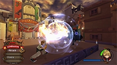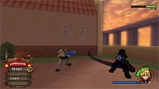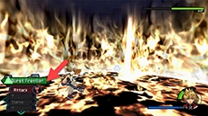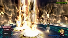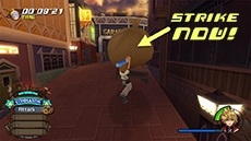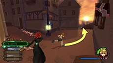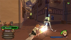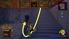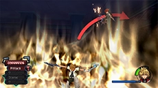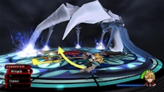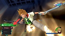 When Axel crouches down for a couple of seconds, he will quickly dash to either side of Roxas and attack with his flaming chakrams; it's difficult to run out of range of this attack in time, so it's better to use the Guard ability as Axel approaches to deflect the attack. Axel will either side-step or use his two-hit combo after this attack, so be ready to move or attack accordingly.