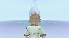 Exit the tunnel and travel to the alcove in the southwest corner of Sunset Terrace. Investigate the waterfall - a dark illusion of Roxas will appear to challenge him.