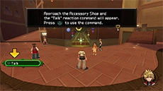 Reaction commands are used to execute different actions depending on your situation. You can use them to talk to NPCs, open treasure chests, and gain the upper hand in combat. Approach the Accessory Shop and use the Talk reaction command.