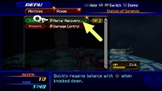 After choosing a dream weapon, the mysterious creatures approach Roxas. Use Reversal to confuse them, then strike with the Keyblade. You can keep them from attacking by using Reversal, striking twice, then using the reaction command again. Defeating the final creature will earn Roxas the Aerial Recovery ability.
