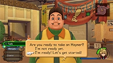 Always strike from the ground; air combo finishers cause Hayner to recover more quickly, leaving you open to attack. You can Guard against Hayner's attacks, but he recovers quickly; it's better to side-step to avoid his attacks to take advantage of longer openings.