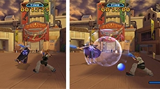 You can use the Guard ability to deflect the balls back toward the wall; any incoming balls behind the one you blocked will be sent back as well. When you reach the back wall, use the Hit reaction command to finish your investigation.