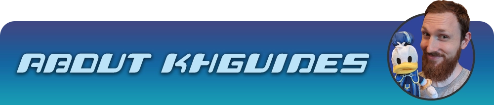 It has always been my goal to have KHGuides.com serve as the perfect companion to your Kingdom Hearts journey, whether it's your first playthrough or your fiftieth. The walkthrough and guide content is built by translating and referencing official Kingdom Hearts Japanese Ultimania publications, corroborating knowledge across other fan-created resources and community feedback, and conducting personal in-game tests. You can join me live on Twitch every week as I continue my work on the guides.