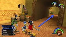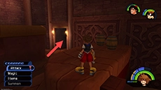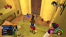 Heartless will appear as soon as you arrive in Agrabah. If you need a quick place to save your game, there's a save station in the Storage room - you'll find this room through the small wooden door to the left of Sora's starting position. Travel through the open passage in front of you to reach the main street, then enter the house labeled "???" by climbing the wooden pole around the corner on your right.