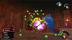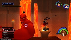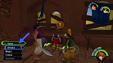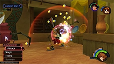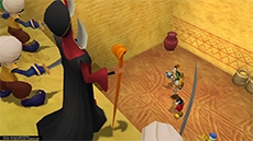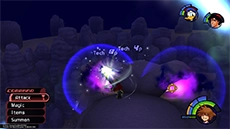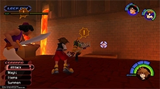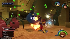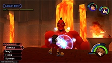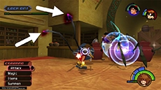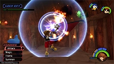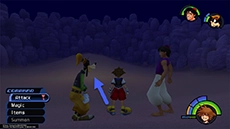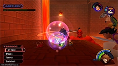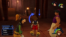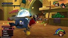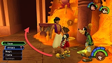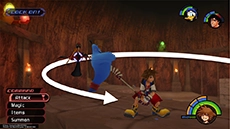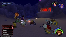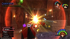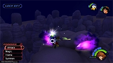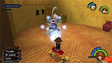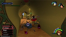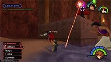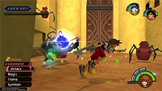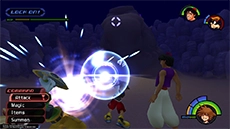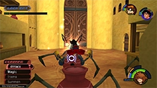 HP: 500 EXP: 600 DIFFICULTY: Jafar will float in a wide circle around the arena; you will need to jump from one of the three stone platforms along the walls and strike him with air combos. As you approach Jafar, run to the sides to avoid his beam attack - it's faster than you think! You'll typically hear him say an incantation that ends in a hiss before sending out the beam. Jafar can also send out a shockwave from beneath his staff; jump at the right time to avoid it, then follow up with an air combo. ![]() ![]() ![]() Genie will move slowly toward Sora or another party member and swing out with his fists. Position your camera so that you keep track of where he is. If you are hit by Genie, he will release HP and munny orbs that you can pick up. After taking hits from several combos, Jafar will disapparate into a glowing ball and move quickly across the arena; keep locked onto him to follow his movements. When he reappears, there's a very short window where you can stagger him before he moves away, but you may find it easier to wait on a neighboring platform and intercept Jafar as he floats toward you. ![]() ![]() ![]() Using magic on Jafar will sometimes cause him to create a barrier, and he will often close in to attack you at ground level at this point. You can use this to your advantage by guarding against his attack and getting a few extra hits on him. Jafar can also light his staff on fire and approach you while swinging it; you can attack with an air combo to interrupt him before he swings, or keep your distance and close in to attack after he swings. ![]() ![]() ![]() REWARD: Sora learns the magic spell Blizzara |