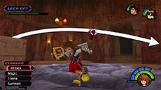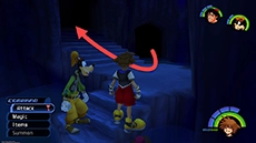HP: 380 EXP: 400 DIFFICULTY: It's recommended to have Aladdin in your party for his high attack power; Donald is nice to have in the party for his Cure magic, but be sure to configure his combat settings in the Customize menu. The Cave of Wonders Guardian will typically start by sending out lasers from its eyes that track a party member. You can send these back for damage using the Guard ability, or use Dodge Roll to avoid them. When the cave dips its nose into the sand, use this opportunity to jump onto the nose and remain there until it rises back up. ![]() ![]() ![]() The Cave of Wonders Guardian is only vulnerable to damage at its eyes. Lock on to an eye and strike with complete ground combos, but be careful not to fall off of its nose. Switching your lock-on to the other eye in the middle of your combo can help you stay on the nose longer. Refrain from moving the left analog stick while the cave sways from side to side. The cave will periodically spit out Heartless; you can send your party members to attack the lesser Heartless on the ground by locking on to them and pressing the ![]() ![]() ![]() Casting Aero will boost your defense during this fight and it's strongly recommended. If you fall off of the nose at any time, dodge roll to either side of the cave to avoid taking damage. Always be aware of your HP during this battle; the Bandits and Air Soldiers have powerful attacks that can still reach you while you're on top of the cave, so be on the lookout for them. REWARD: None |