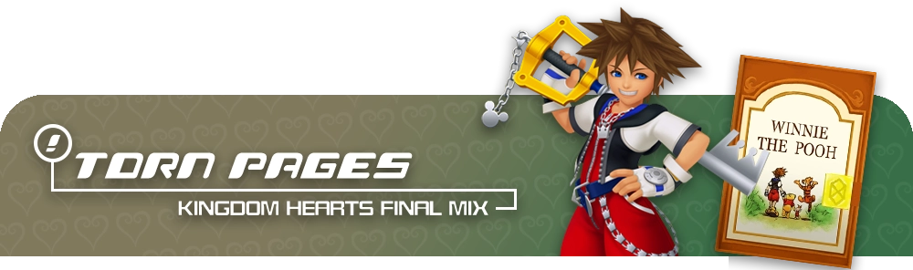 Sora & company can pick up Torn Pages in various worlds. These pages should be returned to Merlin's Old Book in Traverse Town. With each Torn Page returned, more of the Hundred Acre Wood will become accessible.