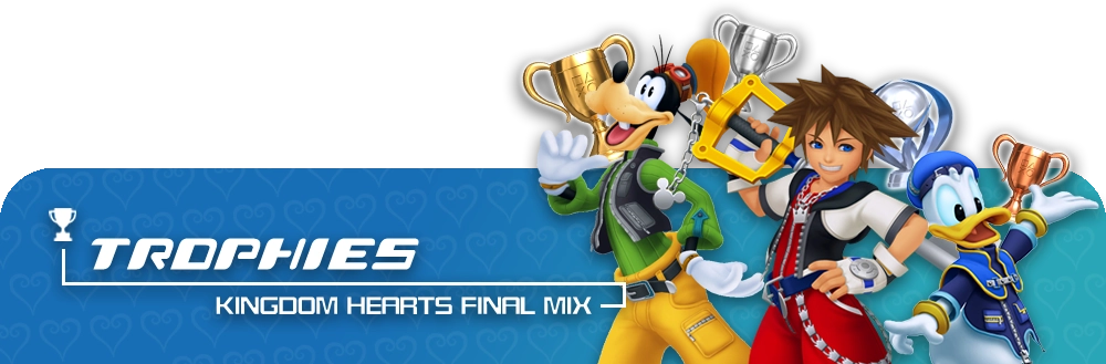 Kingdom Hearts Final Mix offers an array of trophies to collect through in-game achievements on PlayStation, Xbox, Steam, and Epic Games. No in-game rewards are offered for obtaining these trophies, however.