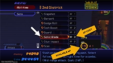 Blitz | 3 | Strike enemies ahead of you with a powerful finishing combo. | Sora (LV 33 ![]() ![]() ![]() |