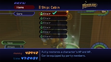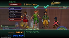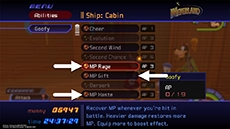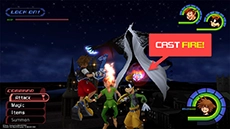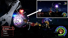 It is strongly recommended that Sora is level 65 or higher before attempting this match. Peter Pan must be in the party for this fight, and Goofy should be in the party with MP Gift equipped and all of his attack abilities un-equipped. Sora and party members should have all MP Rage and MP Haste abilities equipped and a few Elixirs or Ethers on hand.