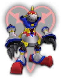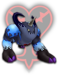 DROPS: Omega Arts (100%) "Immensely powerful Heartless. With their large frame, they trample enemies, and repel most attacks. Damaging their weak point make them lose consciousness. Strike them with potent attacks while they are down." KHGUIDES: Cast Gravity magic and strike its horn relentlessly; hide under it when it starts charging and releases dark orbs. LOCATION: Hollow Bastion |
