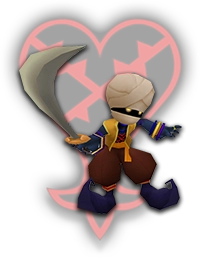 DROPS: Hi-Potion (2%), Mega-Potion (1%), Power Gem (4%) "Heartless that mostly appears in Neverland. They are quite combative with their swords. They often just focus on the enemies in front, making them vulnerable to attacks from behind." KHGUIDES: Fire magic is effective against Pirates. If a pirate falls to the ground, keep your distance; it will jump up with a counterattack. Try to pin them in a corner to prevent them from moving around, then attack relentlessly. LOCATION: Neverland |