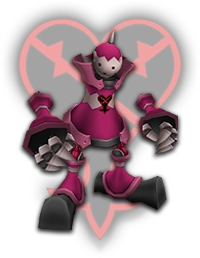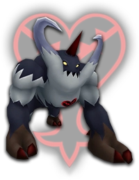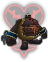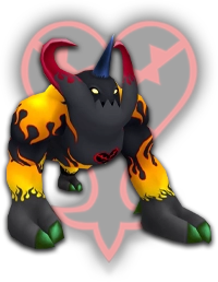 DROPS: Hi-Potion (4%), Spirit Shard (12%), Protera Chain (1%) "Big round Heartless. They seem tame and laid-back, but go berserk when they are angered. With their brute strength, they can inflict great damage, so be on your guard." KHGUIDES: Alway focus your attacks on its back side. When it glows purple, dodge or guard against its charge attack to slow it down. Use Gravity magic to cut its HP. LOCATION: Wonderland, Olympus Coliseum, Agrabah, Monstro, Hollow Bastion |
