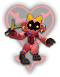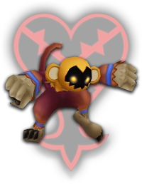 DROPS: Hi-Potion (2%), Power Shard (12%), Protera Chain (1%) "Heartless resembling a monkey. Unlike Powerwilds, they attack from long range with a sling shot. They scamper about during battle, making them difficult to hit." KHGUIDES: Bouncywilds are pretty fast; casting Fire magic while locked on helps deal damage. Try to close the distance between you and Bouncywilds to avoid damage from their projectiles and banana peels. LOCATION: Deep Jungle |