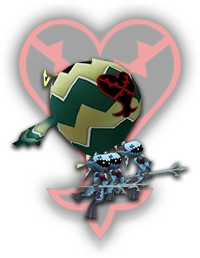 DROPS: Camping Set (1%), Cottage (0.5%), Mythril Shard (1%) "Gunpowder barrel turned Heartless. They charge into their enemies and explode. Any physical impact or Fire will set them off." KHGUIDES: Fire magic will cause them to explode! Try to corral them into a corner before casting; the explosion will set off a chain effect, damaging all nearby enemies. |