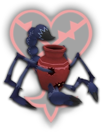 DROPS: Mythril Stone (35-100%), Mythril Shard (20%) "An ordinary pot turned Heartless by the power of darkness. Unlike the Pot Spider, its pot is tough as nails. A simple attack won't be enough to make it cry for mercy. It emanates poisonous fumes as it attacks its prey." KHGUIDES: The Pot Scorpion is a special Heartless that only appears in one area of the game, and you'll have to find it first! Visit our Pot Scorpion Guide to learn how to find and defeat them. LOCATION: Agrabah: Palace Gates |