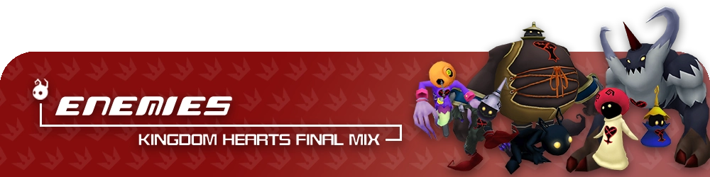 DROPS: Hi-Potion (1%), Lucid Crystal (1%) "Heartless born purely out of darkness. Their movements are unpredictable, as they often make sudden moves and attacks." KHGUIDES: Thunder magic is effective against larger groups. Use close-range aerial attacks relentlessly to prevent them from retaliating. Cast Aero magic to mitigate damage and stagger them. LOCATION: Hollow Bastion, Traverse Town, Wonderland, Deep Jungle, Agrabah, Monstro, Atlantica, Halloween Town, Neverland, End of the World/ |