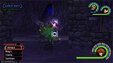 The Chimera Heartless is only found in the Manor Ruins in Halloween Town. If you've already unsealed the Red Trinity on the archway, you'll know you've encountered the right Heartless mob when this Red Trinity does NOT appear. If you haven't yet unsealed this Trinity, another indicator of the Chimera's presence is the appearance of Wight Knights (a single one at first, then a group of three, and finally a group of five).