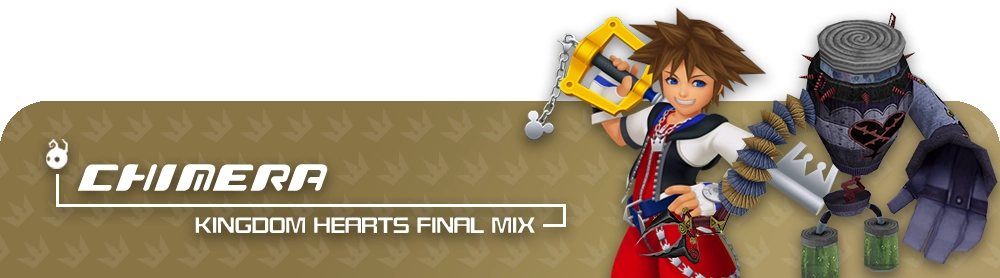 The Chimera is a special Heartless introduced in Kingdom Hearts Final Mix. It's a unique Heartless that drops the rare Blazing Stone synthesis item.