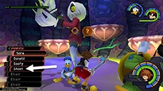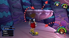 Rather than striking the Grand Ghost with the Keyblade or magic, the only way to deal damage is to use items like Potions, Hi-Potions, and Elixirs. You must select the "Ghost" option in the menu when using an item - this requires you to be close to the Grand Ghost. Locking on to it will help you ensure that the "Ghost" option becomes available as you approach.